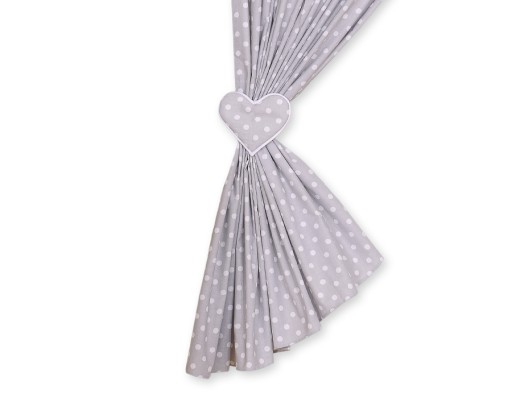 Гарний набір штор із сердечками та ланцюжками, які можна зав’язати з боків. Виготовлений з бавовняної тканини. Верх штор оброблений стрічкою для легкого і рівномірного зминання. Вони чудово доповнюють дитячу кімнату, створюючи гармонійне ціле з постільною білизною на ліжечку.