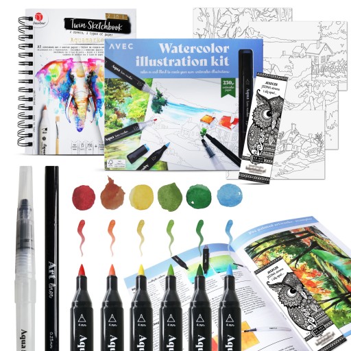 Набір з 20 елементів, все необхідне для створення ілюстрацій акварельними маркерами.
