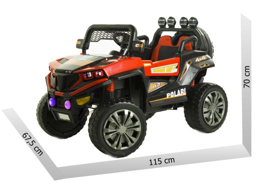 Великий джип на дистанційному керуванні, модель CAR-JM-14Для всіх юних любителів 4-х коліс ми рекомендуємо цю комфортабельну модель акумуляторного автомобіля Двигуни 4 х 45Вт, комфортний салон, безперешкодний пульт, м'які диски EVA, м'яке сидіння, обтягнуте екошкірою, ремені безпеки - лише деякі елементи багатого оснащення автомобіля.Насичена музична панель з USB входом, регулятор гучності подарують масу додаткових вражень під час гри. Автомобіль дистанційно керується за допомогою пульта дистанційного керування 2.4 G. Pilot = контроль опікуна - у будь-який момент опікун може відреагувати пультом дистанційного керування на поїздку своєї дитини. Завдяки цьому рішенню, коли батьки помічають, що дитина їде в неправильному напрямку, вони можуть негайно відреагувати за допомогою пульта дистанційного керування, тобто змінити напрямок руху або негайно зупинити автомобіль - функція STOP в пульті дистанційного керування Функції дистанційного керування: рух вперед / назад, поворот вправо / вліво, контроль швидкості, STOP (негайна зупинка) 2 способи управління джипом: