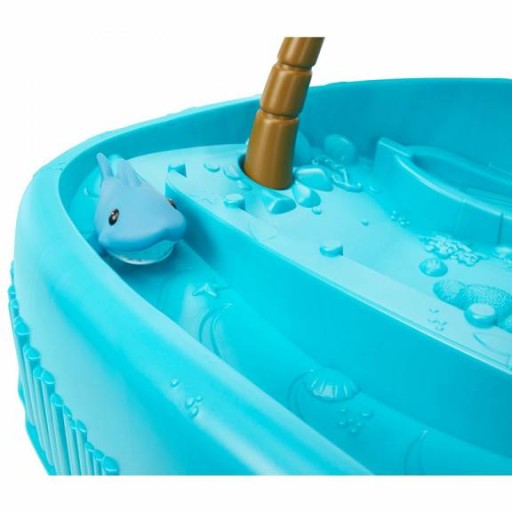 які тварини вміють плавати. Також у комплект входять 2 пальми з дзигами, хвилеподібна котушка, яку запускає дитина, і 3 морські істоти: 2 грайливих нарвали та дуже доброзичлива акула, скриня зі скарбами та черпак для води.