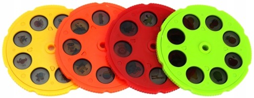 - 4 змінних диска-проектора з 8 дизайнами кожен, розділених за тематикою: тварини, морські тварини, транспортні засоби, фрукти