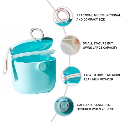 Цей дозатор суміші виготовлено з харчового поліпропілену. Це дуже корисний засіб для мам. Це чудовий інструмент для збереження їжі свіжою. Ніколи більше не терпіть розсипану їжу в сумці для підгузників. Цей дозатор молока дозволяє легко годувати в дорозі.