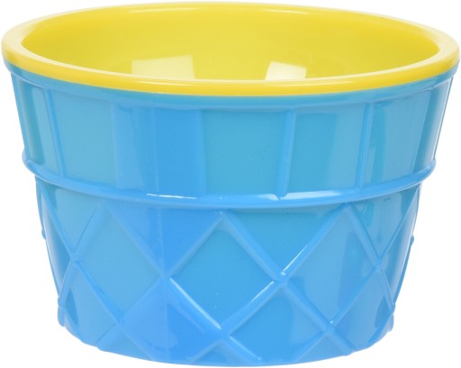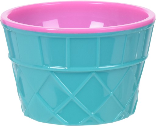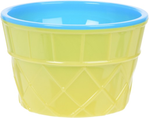 Набір мисок для подачі десертів і морозива на 4 персони, виготовлений із пластику типових літніх веселих кольорів, укомплектований ложками