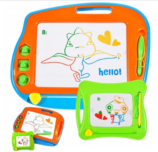 Альбом може приймати незліченну кількість зображень, просто перемістіть спеціальний повзунок, і малюнок зникне, і ви зможете почати з нового. Блокнот оснащений трьома магнітами різної форми, які можуть ще більше урізноманітнити розваги.