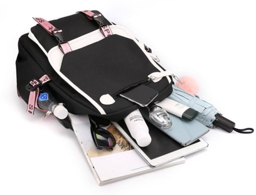 ШКІЛЬНИЙ РЮКЗАК + ЗАМОК + USB КАБЕЛЬ + ДЖЕК КАБЕЛЬ + USB ВИХІД + ПОМПОНОВИЙ БРЕЛОК