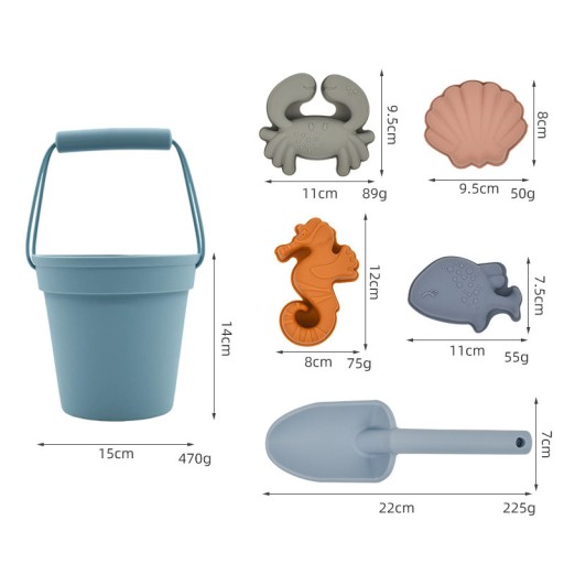 - âГНУЧКІСТЬ І М'ЯКІСТЬ:Аксесуари гнучкі, їх можна м'яти, м'яти і розтягувати без пошкоджень. Це робить іграшки ідеальними для ігор на пляжі, де діти можуть будувати замки, формувати форми та експериментувати з різними конструкціями. Крім того, силікон м'який на дотик, що робить іграшки приємними та безпечними для самих маленьких.