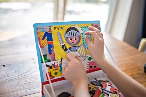 Magnetibook Boys Disguises Magnetibook містить 36 різнокольорових магнітів з елементами костюмів хлопчиків, завдяки яким можна стати, наприклад, піратом, космонавтом або лицарем, і 8 карток із зразками ідей маскування, які можна створити за допомогою магнітів. Це чудова розвага для маленьких костюмерів, а також для всіх творчих дітей.