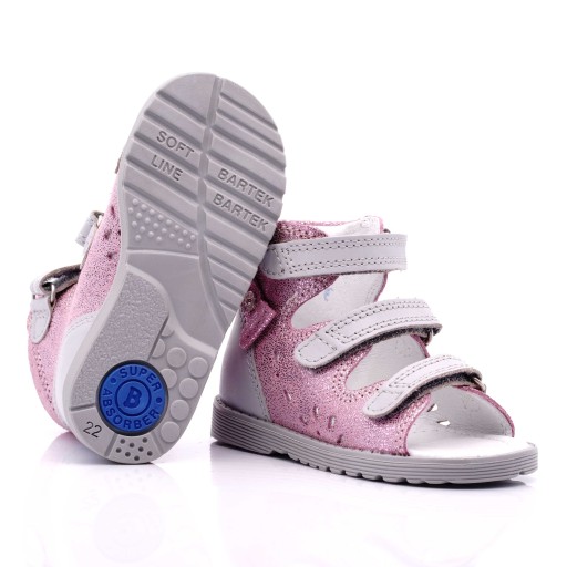 Взуття Bartek створено з особливою турботою про здоров'я дитячих ніжок. Пошито зі шкіри найвищої якості, натуральних і безпечних матеріалів. Перевірений польський бренд, довіра батьків і різноманітність моделей роблять це взуття, яке найчастіше купують на польському ринку.Компанія Bartek спеціалізується на виробництві профілактичного взуття для дітей. Босоніжки марковані знаком «Здорова нога», конструктивно, технологічно та матеріаломістко виготовлені правильно, виконані естетично.