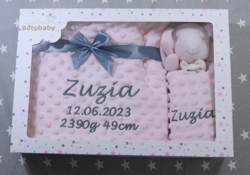 Дуже приємний на дотик, красиво упакований набір, який ідеально підходить для подарунка на хрещення, день народження чи іменини!