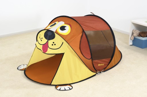 Намет AdventureChasers ⢠Dog Bestwayце пропозиція для кожної дитини. Намет у кольорах і графіці коричневого песика подарує масу творчих розваг кожній дитині, сприятиме вигадувати надзвичайні пригоди казкових песиків. Саморозкладний намет можна встановити будь-де в будинку, на терасі, в саду, на пляжі, біля моря, на озері або в кемпінгу. Намет має вхід, прозору сітку з боків для хорошої вентиляції та щоб батьки бачили, що робить їх дитина. Намет з підлогою дозволяє розмістити в ньому матрац зі спальним мішком (68109 Bestway), завдяки чому дитина буде мати повний комфорт.