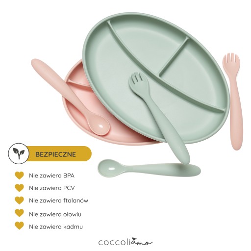 - Силіконова тарілка з присоскою Coccoliamo - ідеальний продукт для дітей, які вчаться їсти самостійно, одночасно розвиваючи дрібну моторику.