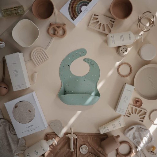 Регульований силіконовий нагрудник з кишенею MUSHIE, Cambridge Blue Confetti