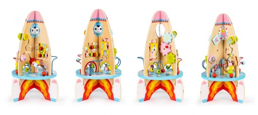 Ракета залишилася повністюз дереваі покритийФарби безпечні для дітей.