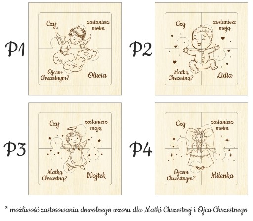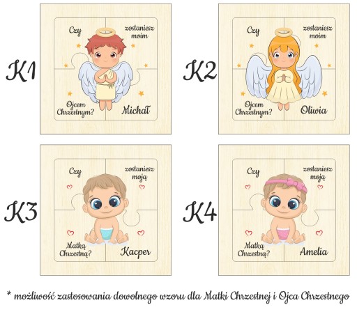 - Усі шаблони пазлів можна використовувати для Хрещеної матері та Хрещеного батька