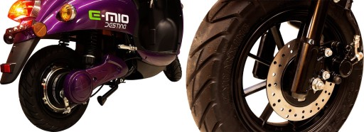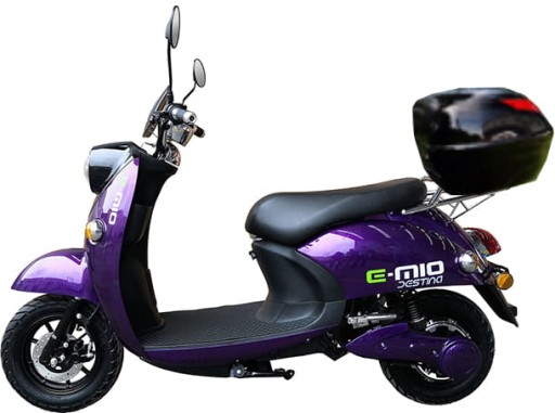 E-mio Destina — тришвидкісний скутер із класичними фарами (режими передач/їзди перемикаються перемикачем на ручці), зі змінним портативним акумулятором. Безщітковий двигун потужністю 2000 Вт розташований на задньому колесі, завдяки чому скутер практично не вимагає обслуговування і не потребує оглядів і обслуговування, крім заміни гальмівних колодок і дисків.