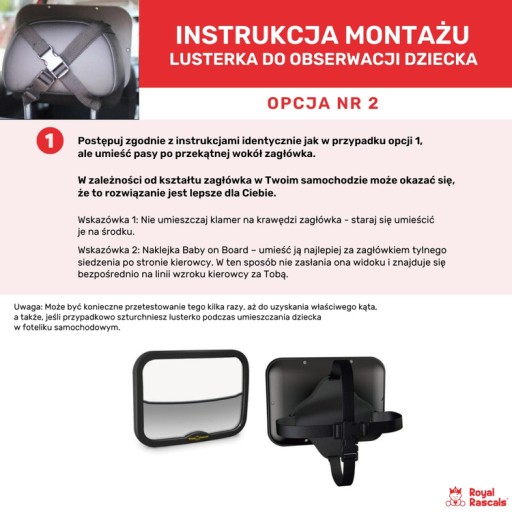 4. Коли дитяче автомобільне дзеркало Royal Rascals® буде надійно закріплено, перевірте кут нахилу дзеркала. Повертайте та нахиляйте дзеркало, поки воно не розташується так, щоб ви могли бачити свою дитину з водійського сидіння. Примітка. Вам може знадобитися перевірити це кілька разів, поки ви не отримаєте правильний кут, а також якщо ви випадково тицьнете дзеркало, коли садите дитину в автокрісло. Насолоджуйтеся дитиною під час катання та знайте, що все під контролем!