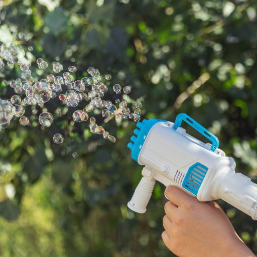 - Бульбашкова рушниця також може стати чудовою груповою розвагою. Діти можуть грати разом, змагаючись, ловлячи та намагаючись лопнути якомога більше бульбашок. Це чудова можливість соціально взаємодіяти, співпрацювати та створювати розваги разом.