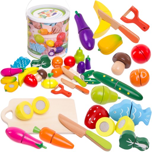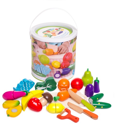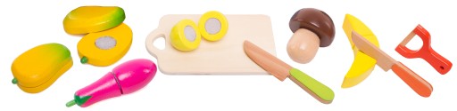 Іграшка послужитьнавчитися вирізати. Фрукти та овочі можна «розрізати» ножем, що входить до комплекту, потім їх легко з’єднати за допомогою липучок, розташованих усередині.