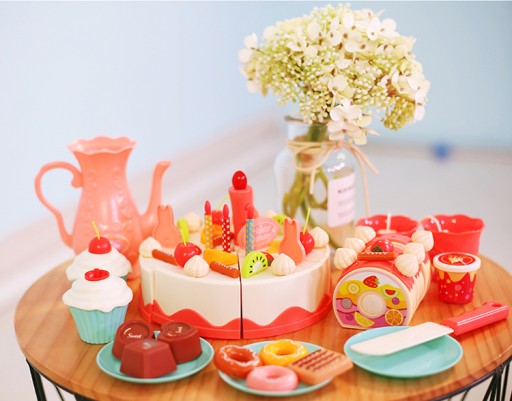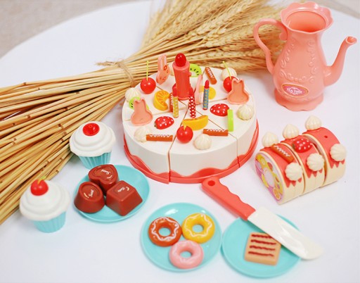 - Фантастичний набір маленького кондитера, торт з'єднується за допомогою липучок, завдяки яким дитина може "різати" ласощі ножем, а потім з'єднувати їх знову.