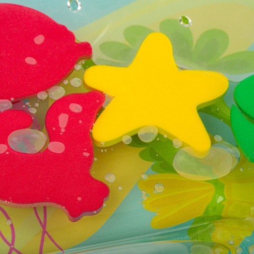 Завдяки різним кольорам килимка та тваринам, які плавають всередині, дитина познайомиться з новими кольорами та формами, що швидко розширить її уяву та концентрацію.