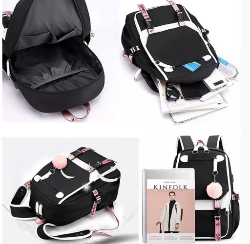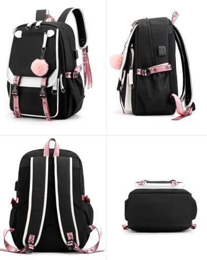 â Рюкзак має: USB-порт Micro Jack, гніздо для навушників, кабель для навушників, USB-кабель, замок, брелок з помпонами, • Розміри рюкзака: висота 46 см, ширина 30 см, глибина, ширина 20 см, місткість до 37 літрів â Два кольори на вибір: чорний, білий, чорний, рожевий Після покупки вказуйте бажаний колір.
