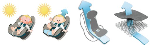 Протектор для автокрісла для запобігання надмірного потовиділення дитини. М'який протектор, який обмежує надмірне потовиділення дитини і захищає автокрісло. Оптимальна циркуляція повітря дозволяє більш ефективно контролювати температуру тіла дитини.