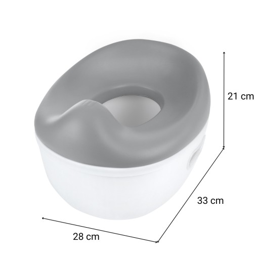 Горщик служить окремою накладкою і платформою для дітей старшого віку, що полегшує дитині перехід від горщика до справжнього унітазу.