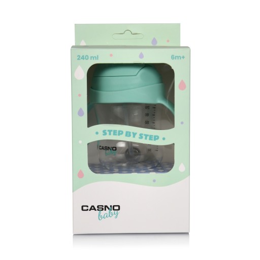 â Пляшка Casno DIZZY має ємність 240 мл. Це маєлітровий масштабз кроком 30 мл, що дозволяє легко відміряти приготовані напої.Один флакон - два мундштука. Casno DIZZY оснащений двома типами мундштуків. Перший,чашка-непроливайкапризначений для дітей від 6 місяців. по-друге,мундштук із соломинкоюяк наступний крок у навчанні пити самостійно.