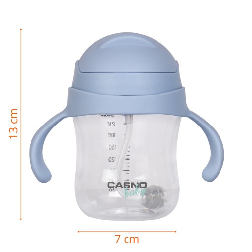 â Casno DIZZY маєнеслизькі, обертові ручкиі гнучкий, гравітаційнийсоломи з вагоющо дозволяє дитині вільно пити в усіх можливих позах. Пляшка Sippy з неслизькою кришкоюзберігає повну герметичність, також у перевернутому нижньому положенні.