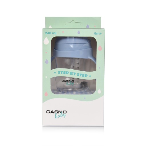 â Пляшка Casno DIZZY має ємність 240 мл. Це маєлітровий масштабз кроком 30 мл, що дозволяє легко відміряти приготовані напої.Один флакон - два мундштука. Casno DIZZY оснащений двома типами мундштуків. Перший,чашка-непроливайкапризначений для дітей від 6 місяців. по-друге,мундштук із соломинкоюяк наступний крок у навчанні пити самостійно.