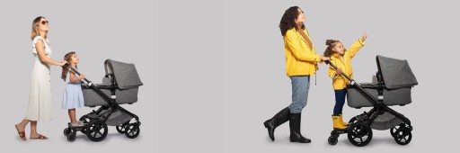 Ідеальний дизайн - залишає свободу пересування для батьків, оснащений боковою захисною рамою, великими колесами, системою амортизації та системою «Підніми та зберігай». У комплект входить додатковий набір конекторів - швидка установка подовжувача на дві каретки без необхідності пересування конекторів.