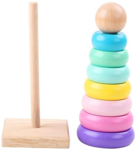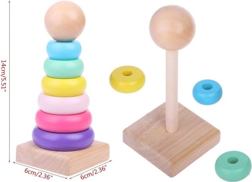 Усі кольори веселки представлені сімома гладкими дерев’яними блоками, які легко тримати в руках. Їх варто поставити на міцну дерев'яну основу, а інтригуюча гра стимулює обидві півкулі мозку, вчить логічно мислити і розвиває спритність.