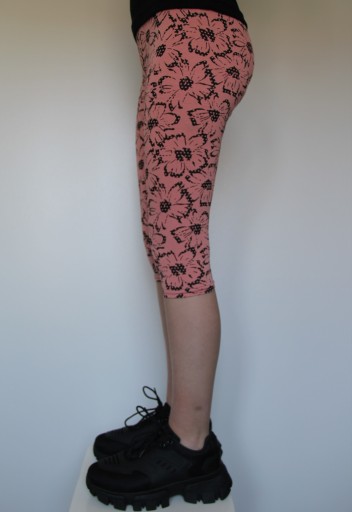 Персикові легінси 3/4 з модним малюнком в чорні квіти: