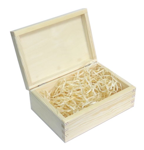 Коробка наповнена деревною шерстю - яка захистить подарунок всередині.