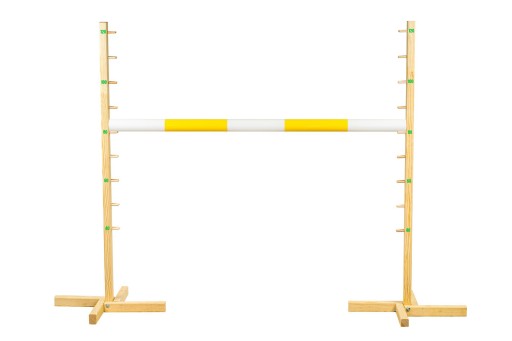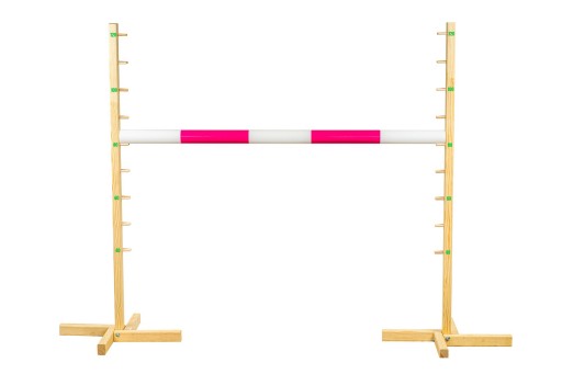 У комплект входять дві дерев'яні опори і одна жердина. Жердина шириною 120 см і діаметром 5 см, з можливістю кріплення до ручок на висоті від 40 см до 120 см (нумерація висоти на дерев'яних опорах), ручки через кожні 10 см. При штовханні ногою палиця безпечно падає з опори.