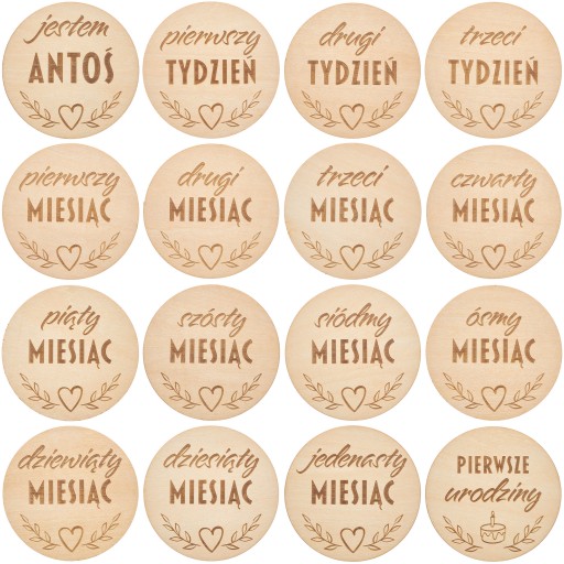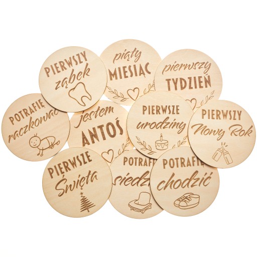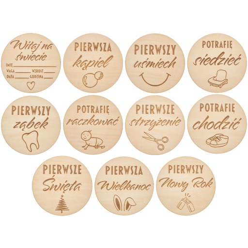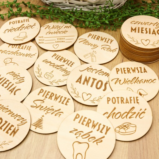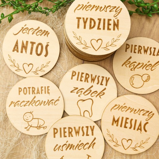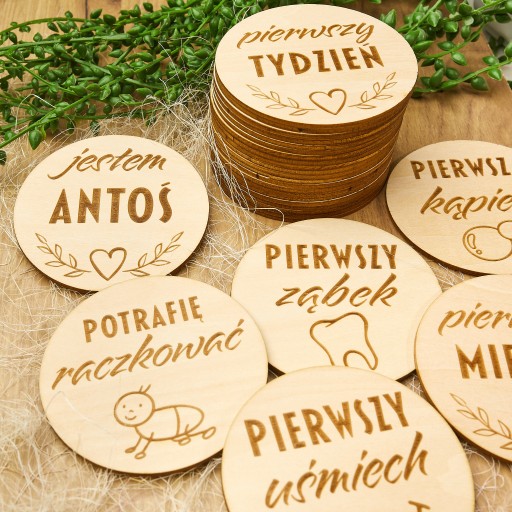 Дерев'яні таблички для фотографій, що документують найважливіші моменти в перші місяці життя вашої дитини - великий набір з 27 табличок ✅ Збережіть спогади ✅ Ідеальний подарунок для майбутніх батьків ✅ Зроблено в Польщі ✅ У набір входять усі таблички Розміри: Å Діаметр: 9 см - ідеально підходить для фотографій Товщина: 3 мм Матеріал: високоякісна липова фанера â Фотографії, зроблені з табличками, стануть незабутнім сувеніром