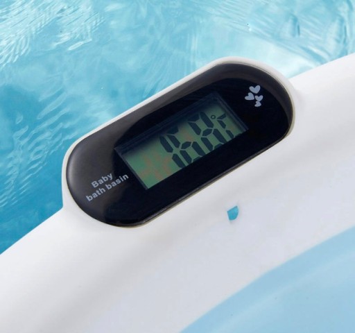 - Ванна оснащена електронним датчиком температури, який дозволяє точно визначити відповідну температуру води для вашої дитини