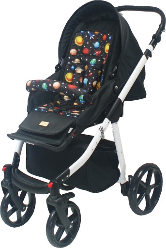 Універсальна двостороння вставка з бар'єром і захистом для ременя розроблена для більшості моделей колясок.