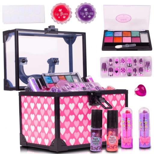 Кофр оснащений зручною ручкою, щоб дитина могла брати його всюдиде забажає і організує власний салон краси незалежно від місця.