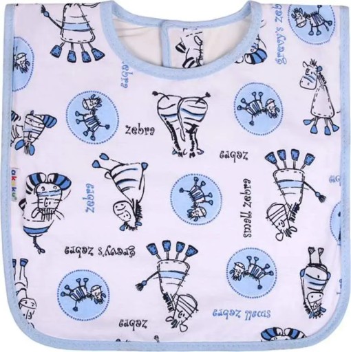 Нагрудник виготовленийвиготовлена з високоякісної 100% бавовни. Внутрішня частина обшита водонепроникним шаром м'якої клейонки, який додатково захищає одяг від бруду і робить нагрудник водонепроникним. Зручна і практична застібка на липучці підвищує комфорт носіння нагрудника, а барвисті аплікації роблять прийом їжі дитини більш приємним. Зроблено в Польщі.