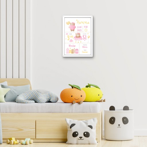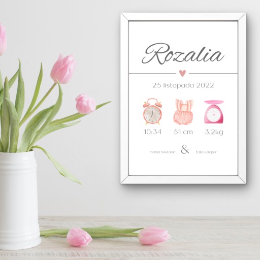 - Свідоцтво про народження - це персоналізований плакат, на якому містяться всі важливі деталі дня народження дитини.
