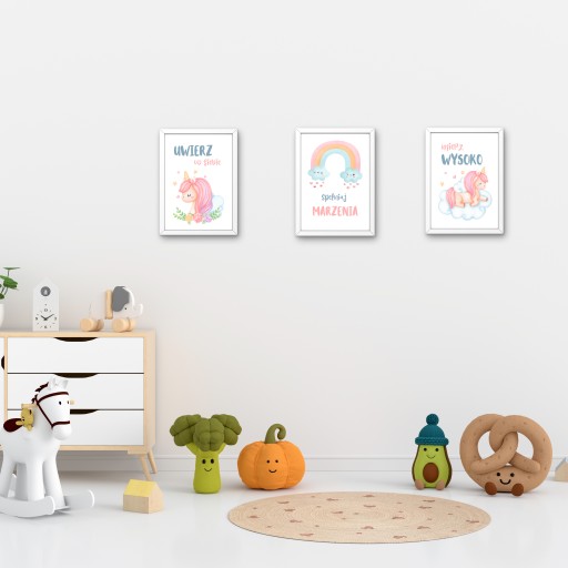 Чудовий набір плакатів із зображенням чарівних єдинорогів стане ідеальною прикрасою кімнати кожної дівчини.