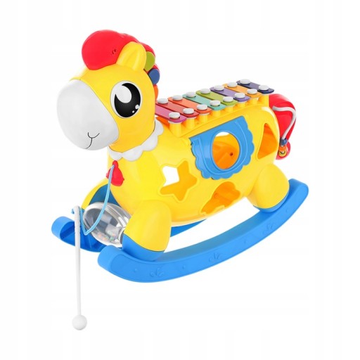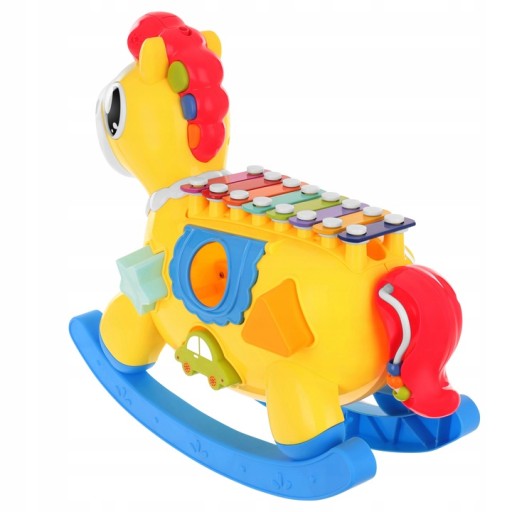 Іграшка характеризується багатьма цікавими елементами, такими як тарілки, сортер, рухливий хвостик і брязкальце. Додатковою перевагою коня є звуки і світло, які від нього виходять. Це буде чудовий подарунок як для дівчинки, так і для хлопчика. Порадуйте свого малюка!