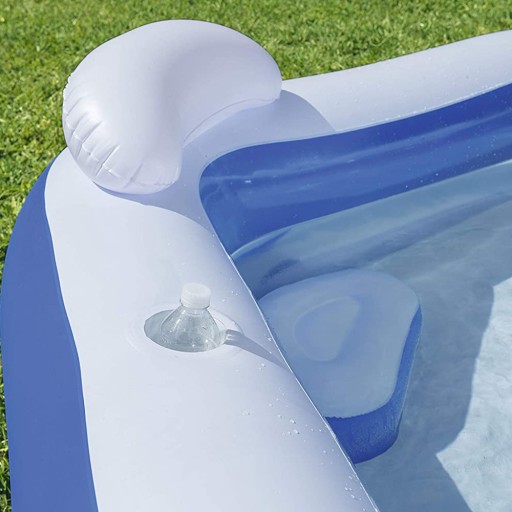 - Розслаблення та зменшення стресу: басейн Bestway також є чудовим місцем для відпочинку та зменшення стресу. Занурюючись у теплу воду, ви можете відчути, як напруга зникає, а ваш розум розслабляється. Завдяки вбудованим спинкам і отворам для напоїв, басейн може стати вашим місцем відпочинку. Це ідеальне місце, щоб відпочити від повсякденних турбот і поринути в оазис спокою та відпочинку.