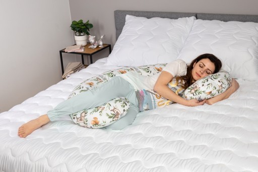 Великий розмір подушки (довжина 300 см) дозволяє мамі комфортно відпочити протягом дня і розслабитися, підтримуючи все тіло. Під час сну велика подушка допомагає знайти зручне положення, що сприяє здоровому сну. Розвантажуючи спину, плечі та шию жінки, він знімає стрес і полегшує сон. Розмістіть його між колінами, щоб розвантажити тазостегновий суглоб.
