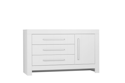 - Комод має 3 містких ящика і тумбу.
