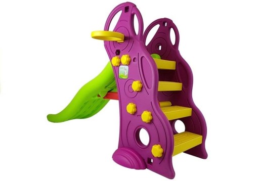 У комплект входить довга і широка гірка, довжина якої досягає 140 см. Гірка має широкі і стійкі сходи, завдяки яким легко піднятися на вершину. Збоку розташоване баскетбольне кільце.