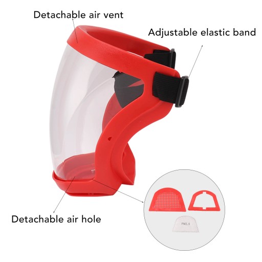 Характеристика: 1. ПОВНЕ ОБЛИЧЧЯ КРИВО: Захист великої області від брів до підборіддя, запобігання сторонньому вторгненню, повний захист обличчя, запобігання краплям, слині, бризкам, маслу та пилу. 2. УЛЬТРА ЧІТКИЙ ЗІР: полікарбонатні лінзи, що запобігають запотіванню, чисті та прозорі, а вигини повторюють контур вашого обличчя, тож не хвилюйтеся про погіршення зору. 3. ЗАСТОСУВАННЯ: підходить для тривалого носіння, захищає обличчя та очі, ідеально підходить для різноманітного промислового та домашнього використання, легкий і зручний. 4. ДИЗАЙН ДЛЯ БАГАТОРНОГО ВИКОРИСТАННЯ: знімний захисний щиток для обличчя практичний і портативний. Його можна чистити та доглядати за допомогою мильної води після кожного використання. 5. РІЗНОМАНІТНІСТЬ МАТЕРІАЛІВ: Складається з м’якого та зручного силікону та дуже гнучких лінз, розроблених з регульованими еластичними стрічками.