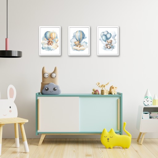 Картинки для дитячої кімнати 3 плакати пастельні ведмедики повітряні кулі