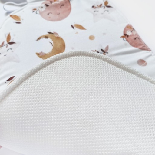- верхній шар виготовлений з бамбукової віскози, яка також має чудові дихаючі та терморегулюючі властивості. Бамбукова тканина, завдяки своїм зручним для дітей властивостям, є матеріалом, який цінують багато батьків для створення аксесуарів для дітей та немовлят.